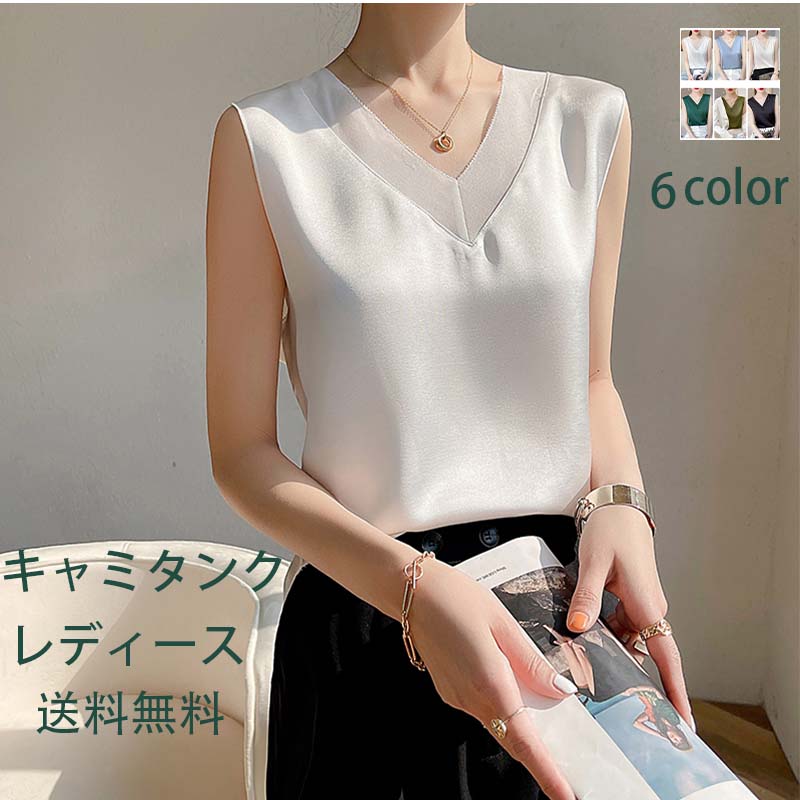 キャミタンク レディース トップス タンクトップ サテン ノースリーブ vネック ショート丈 夏 肌着 大きいサイズ おしゃれ かわいい セクシー 大人 可愛い 薄手 涼しい ゆったり 重ね着 無地