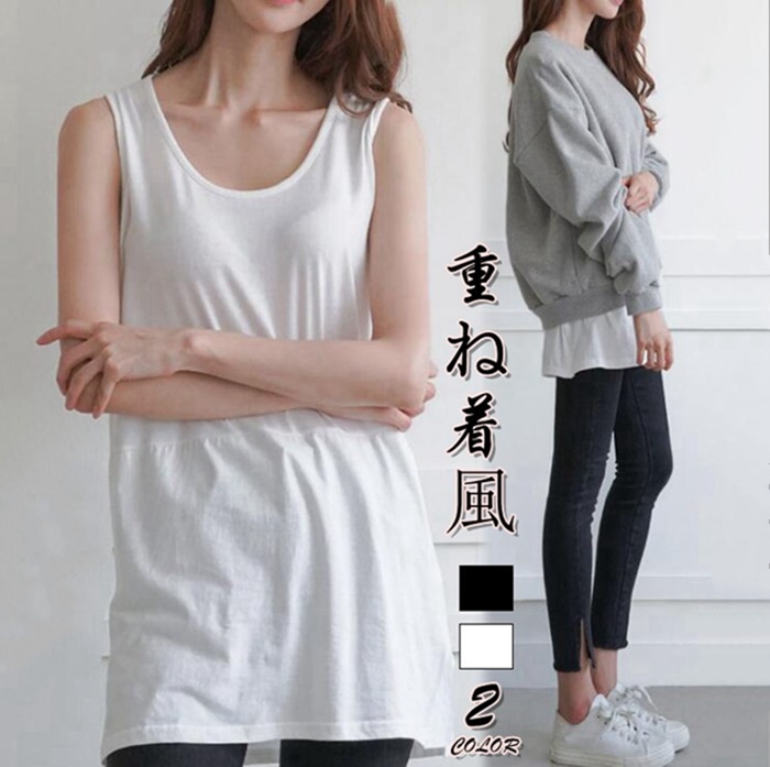 パーカーとコーデ だけお洒落完成タンクトップ タンクトップ レディース ロングタンクトップ レイヤードTシャツ トップスレディース レイヤードトップス 重ね着 レイヤード コーデ 体型カバー 重ね着風
