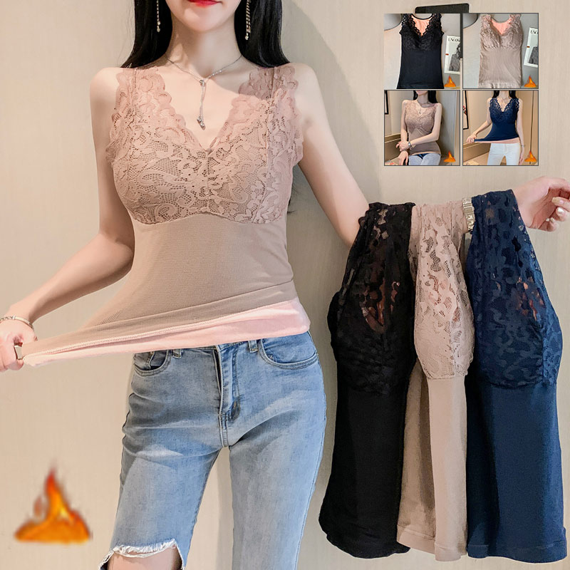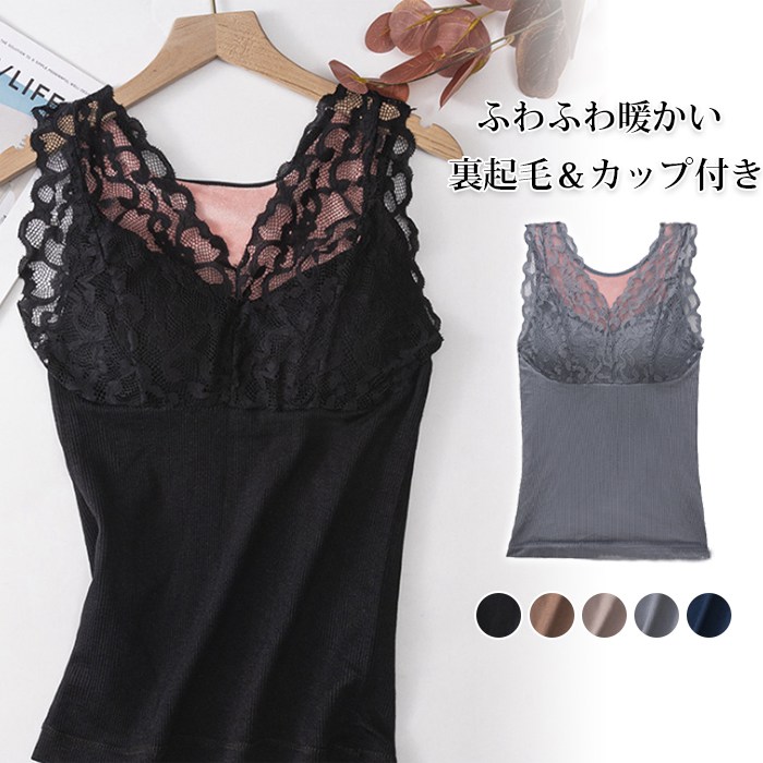 タンクトップ 裏起毛キャミソール あったか カップ付き インナー レース付き おしゃれ 防寒レディースファッション トップス キャミソール