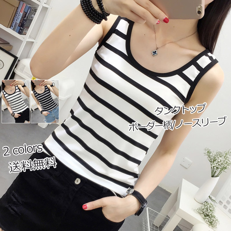 タンクトップ レディース Tシャツ ボーダー柄 ノースリーブ ゆったり 柔らかい トップス カジュアル インナー 女性用 着痩せ きれいめ おしゃれ