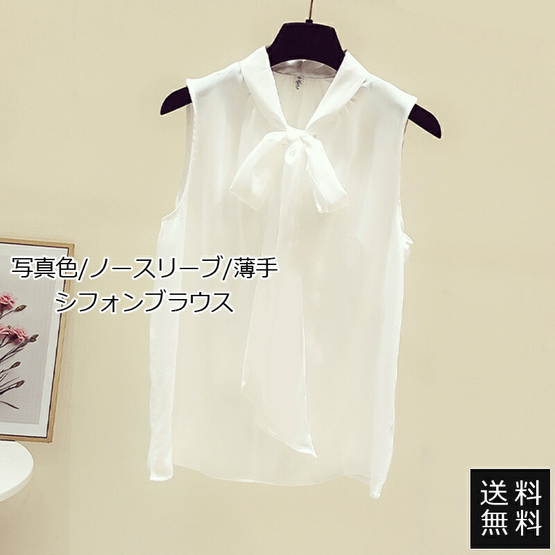 シフォンブラウス レディース ブラウス シャツ リボン 可愛い ブラウス ノースリーブ 無地 高級感 薄手 エレガント トップス 着痩せ オフィス 通勤 オシャレ
