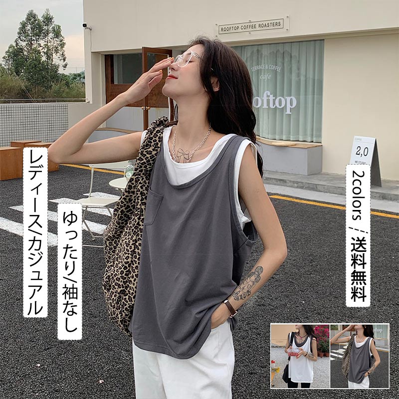 キャミソール レディース タンクトップ 薄手 袖なし 重ね着風 カジュア Tシャツ ゆったり トップス シンプル アウトドア 春夏 きれいめ おしゃれ