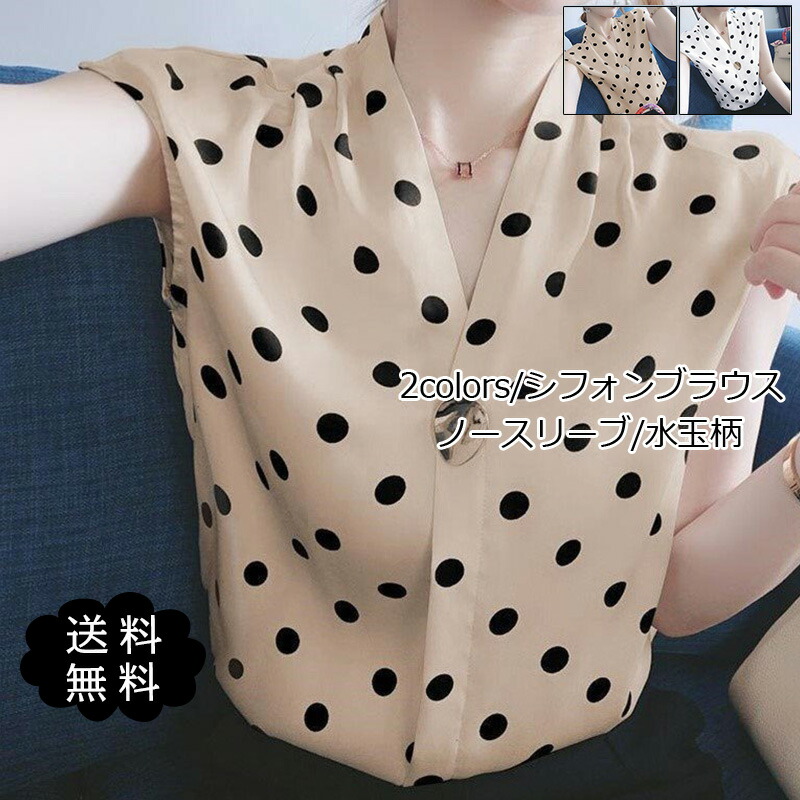 シフォンブラウス レディース ブラウス シャツ 水玉柄 ノースリーブ Vネック 高級感 シンプル エレガント トップス 着痩せ オフィス 通勤 オシャレ