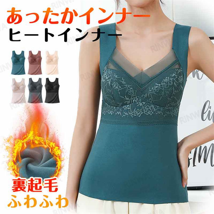 裏起毛タンクトップ キャミソール あったか カップ付き インナー レース付き おしゃれ 防寒レディースファッション トップス キャミソール