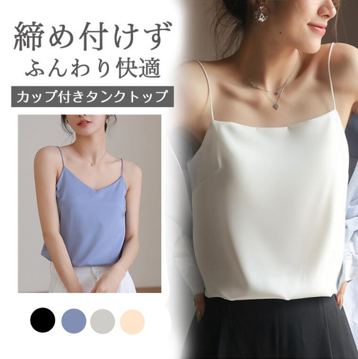 カップ付きタンクキャミ ブラトップ キャミソール サテン 下着 インナー サテンキャミソール レディース ブラ不要 おしゃれ 光沢 立体カップ シルクタッチ オフィス セクシー