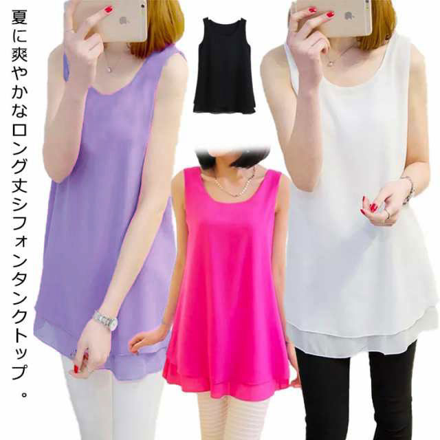 ロング丈 ~5 シフォンタンクトップ 涼しい 体型カバーレディースファッション トップス タンクトップ