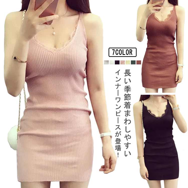 キャミワンピース レース 着瘦せ 大人可愛い Vネック タイトレディースファッション トップス キャミソール