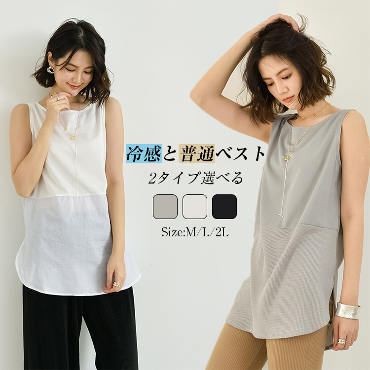 S~4XL ノースリーブ タンクトップ ひんやり 重ね着 ゆったりレディースファッション トップス タンクトップ