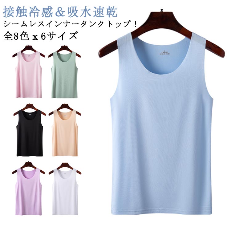 レディース タンクトップ 接触冷感 下着 インナー 涼感 冷感 ひんやり 肌着 レイヤード ネック 見えない キャミソール ブラ紐 全8色x6サイズ 大きいサイズ 吸水速乾