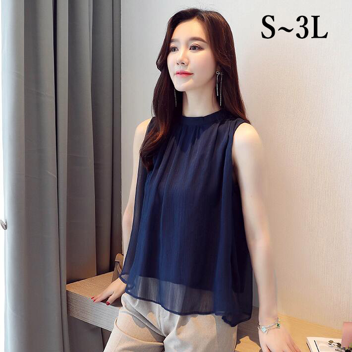 ブラウスレディースノースリーブタンクトップ大きいサイズインナーネック シフォントップス オフィスフォマール春夏23