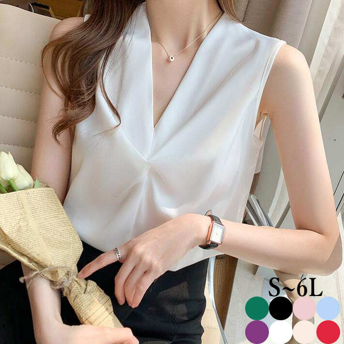 ブラウスレディースノースリーブタンクトップ大きいサイズインナーVネック シフォントップス オフィスフォマールOL春夏SML2L3L