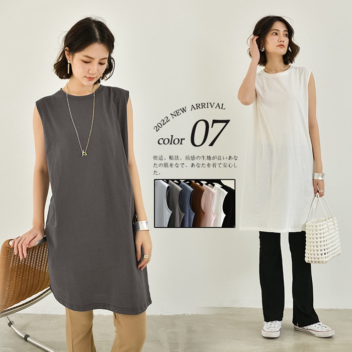 ロングシャツ レディース タンクトップ ノースリーブ ロング カジュアル インナー ファッション 肌着 夏 プレゼント