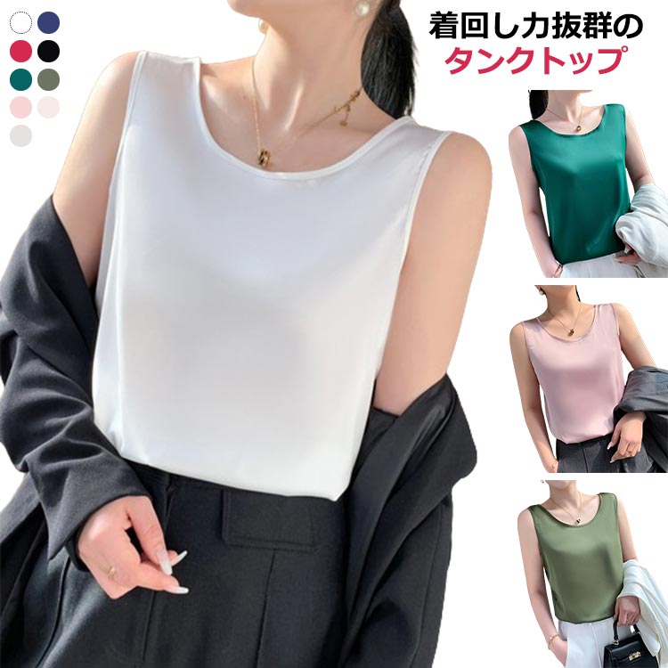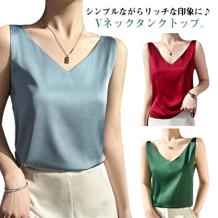 タンクトップ サテン調 レディース ノースリーブ キャミソール トップス シャツレディースファッション トップス タンクトップ