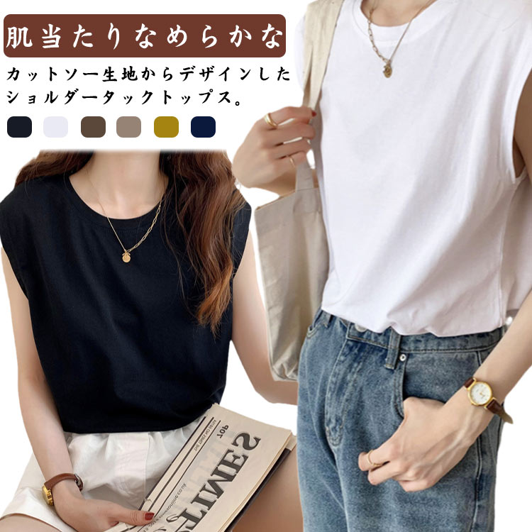 レディース シャツ ノースリーブ カットソー 春夏 ラウンドネックレディースファッション トップス タンクトップ