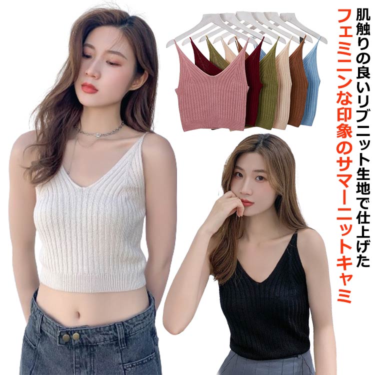 キャミソール サマーニット ノースリーブ トップス レディース リブニット へそ出レディースファッション トップス キャミソール