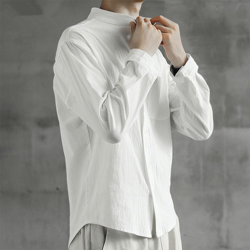 ジュアルシャツ メンズ シャツ 綿麻シャツ 七分袖長袖 さわやか ヘンリーネック トップスシンプルボタンダウンメンズシャツ開襟 春下秋冬紳士用通気性チャイナ風