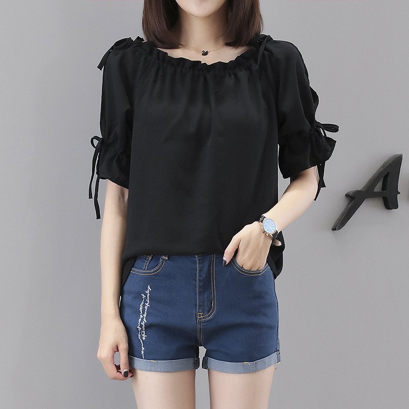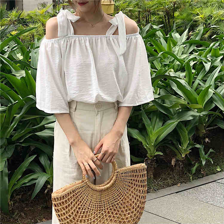 レディースブラウスオフショルダー肩リボン肩見せ肩出しシャツトップスカジュアルキュート可愛いフェミニンきれいめ上品エレガントおしゃれお出かけ