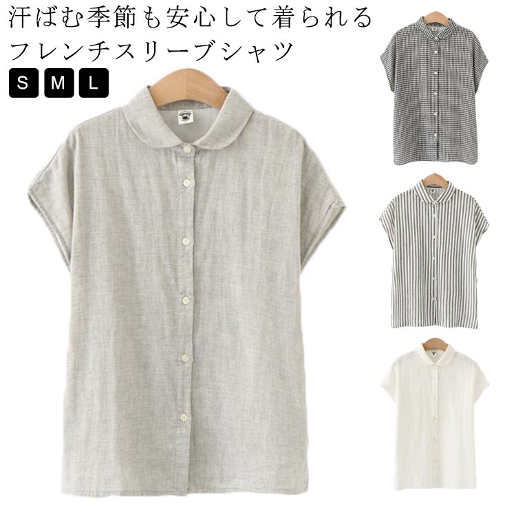 S M L フレンチスリーブ 半袖ブラウス 着瘦せ 大人可愛いレディースファッション トップス シャツ ブラウス