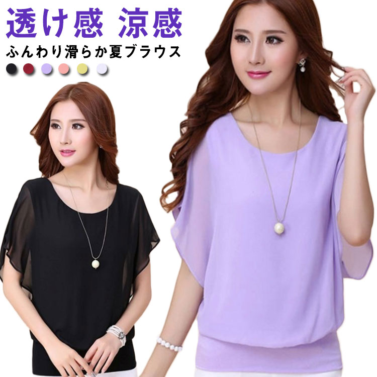 シフォンブラウス 上品 半袖 大人可愛い ネック ~3レディースファッション トップス シャツ ブラウス