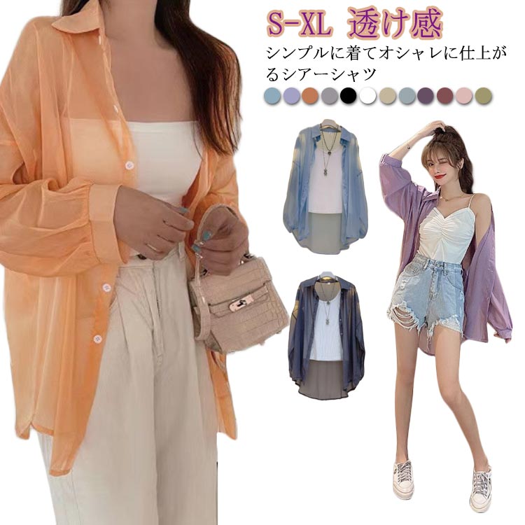 シアーシャツ おしゃれ ふんわり 開襟 シアー レディース ゆったり ボリュームスリーブ 透け感 カジュアル 冷房対策 羽織 UVカット ロング丈 薄手 紫外線対策 シースルー 紫外線 プレゼント 体