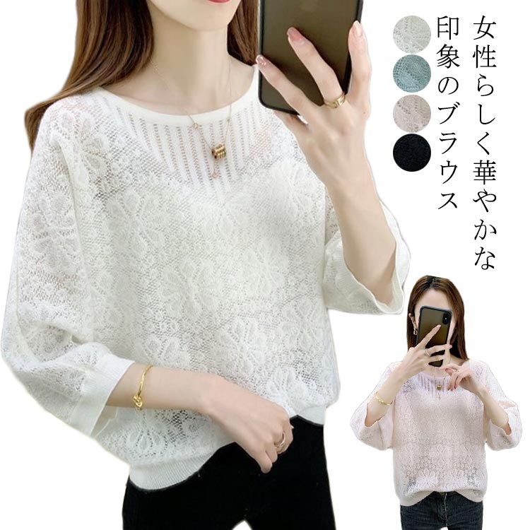 透け感 ~3 サマーニット 上品 トップス 薄手 ~3レディースファッション トップス シャツ ブラウス