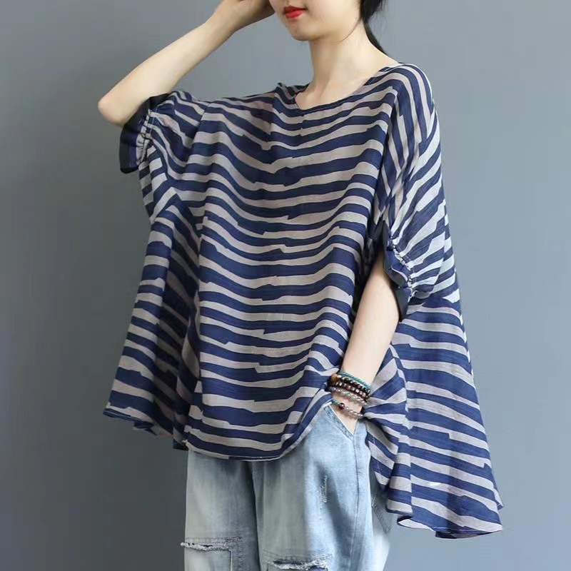 レディース トップス 春 夏 ゆったり 半袖 薄手 大きいサイズ ボーダー柄 半袖チュニックレディース