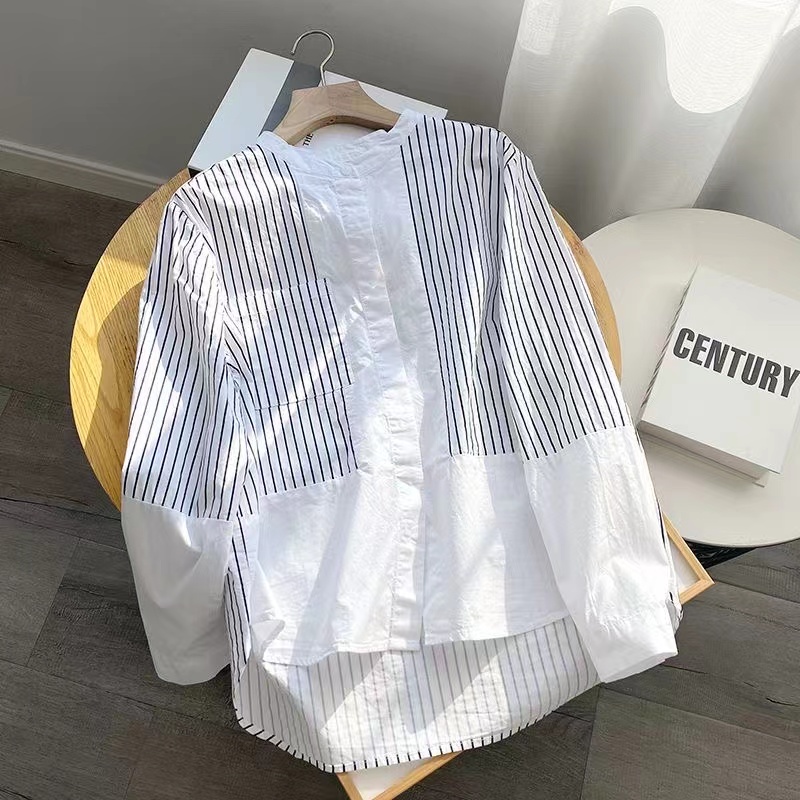レディース シャツ トップス 春夏 ゆったり 可愛い 襟付き 長袖 ストライプ柄 023レディースファッション トップス シャツ ブラウス