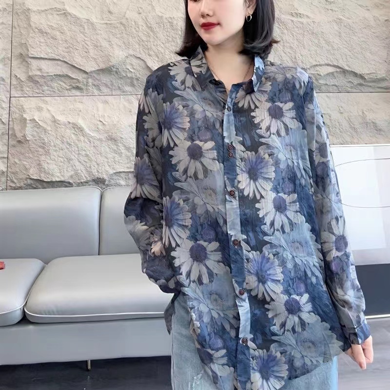 日焼け止め アウター レディース 夏 ゆったり 透け感 総柄 トップス 通勤 カジュアル 長袖レディースファッション トップス シャツ ブラウス