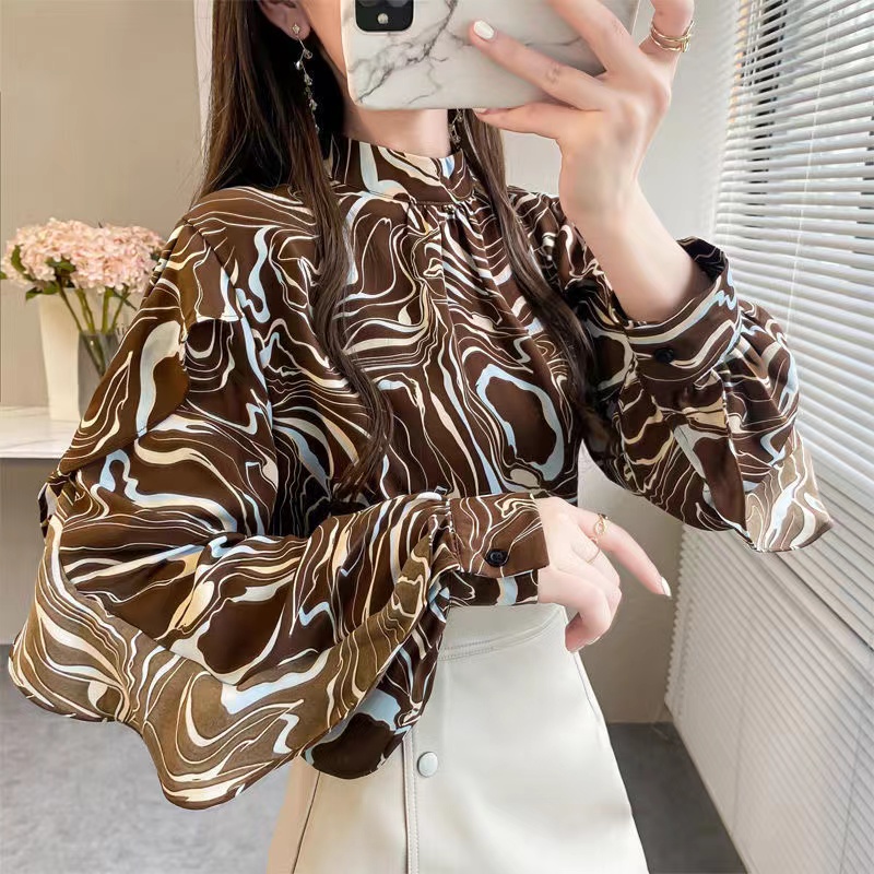 シャツ レディース 夏 ゆったり シフォン 長袖 トップス 通勤 総柄 カジュアルレディースファッション トップス シャツ ブラウス