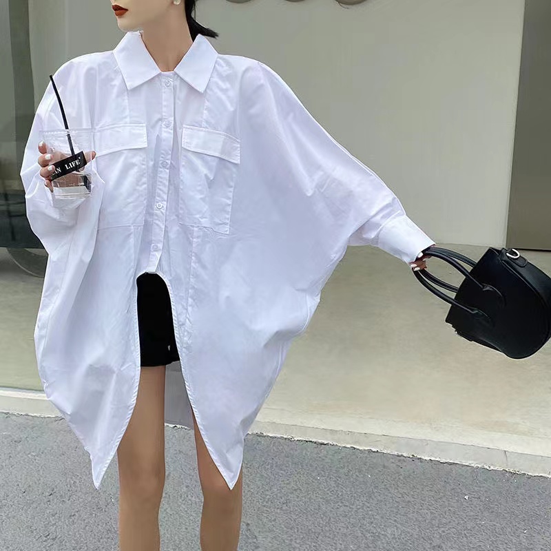 レディース シャツ 春夏 ゆったり 可愛い 無地 オーバーサイズ こうもり袖 長袖 大きいサイズ 043