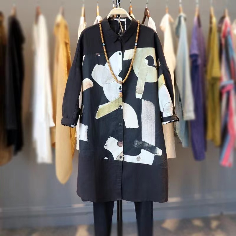 レディース トップス シャツ ロング 春夏 ゆったり 可愛い 総柄 長袖 大きいサイズ 017