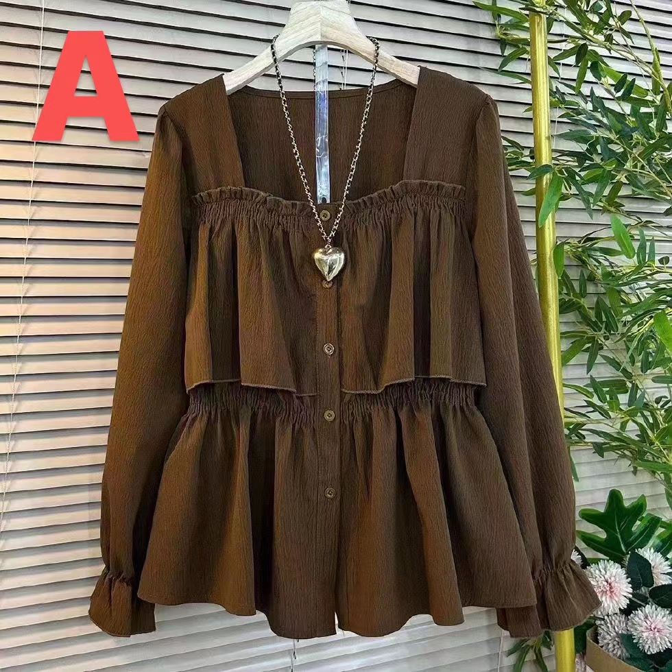 レディース 秋冬 フレンチ レトロ スクエアネック フリル ウエスト シャツレディースファッション トップス シャツ ブラウス