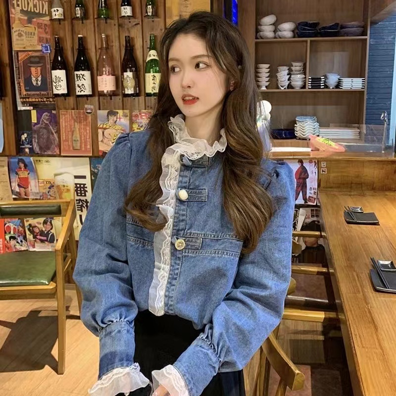 トップス レディース デニム シャツ ブラウス 袖あり ボリューム袖レディースファッション トップス シャツ ブラウス