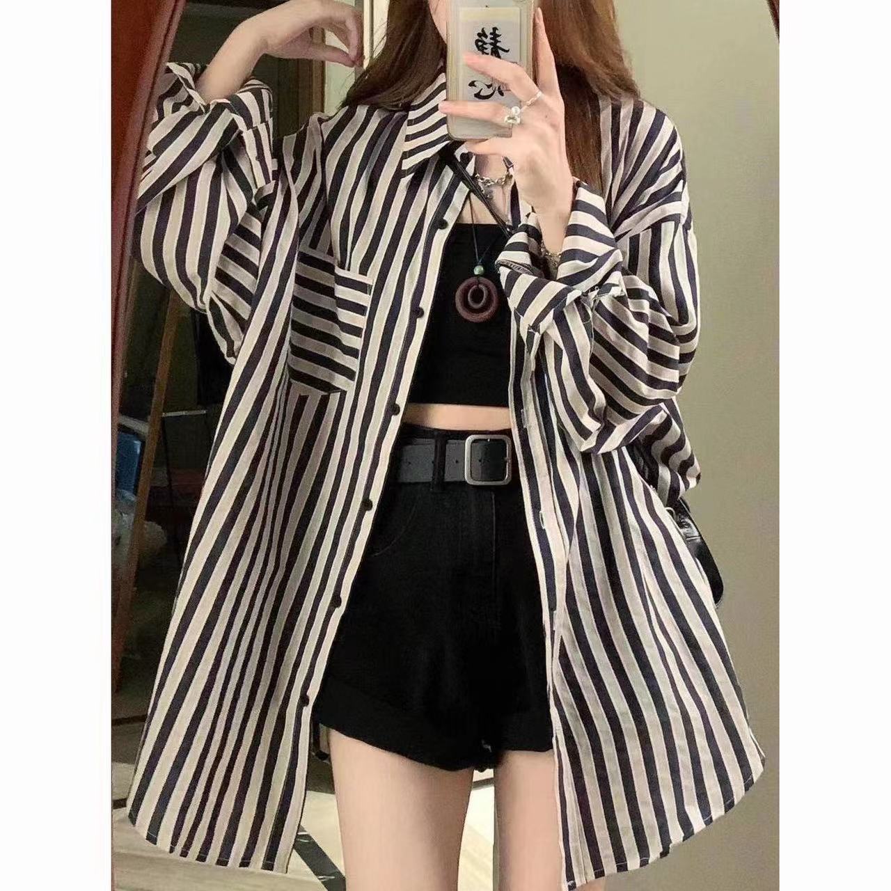シャツ レディース トップス ストライプ柄 ロング シフォンシャツ 襟付き 春秋レディースファッション トップス シャツ ブラウス