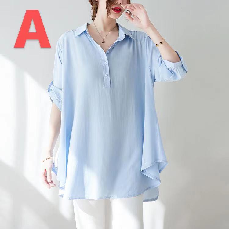 レディース トップス シャツ 夏 襟付き 無地 通勤 七分丈袖 大きいサイズレディースファッション トップス シャツ ブラウス
