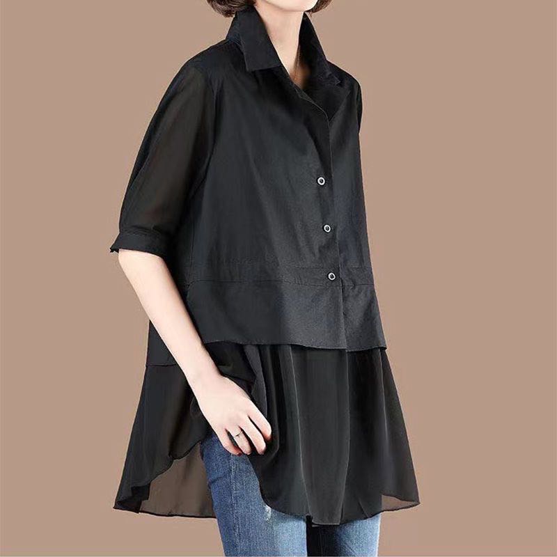 レディース シャツ トップス ロング 夏 重ね着風 無地 半袖 大きいサイズレディースファッション トップス シャツ ブラウス