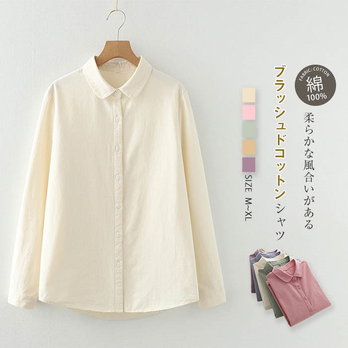 綿100% シャツ ブラウス レディース 微起毛 春 秋 冬 ブラッシュドコットン 大人 あったか シャツブラウス 長袖 丸襟 トップス 羽織り カジュアル 無地