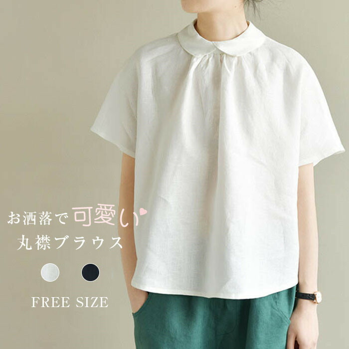料無料 リネン ブラウス レディース かわいい 可愛い ブラウス トップス プルオーバー カジュアル シャツ ブラウス ギャザー 大きいサイズ