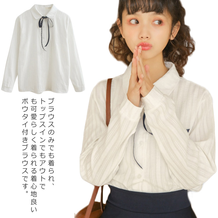 シャツブラウス レディース 白シャツ トップス チュニック 長袖ブラウス ボウタイ 丸襟 シャツ シフォン レディース リボン フォーマル かわいい きれいめ 通勤 通学 事務服 可愛い 新作