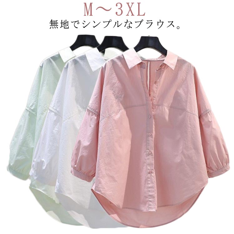 レディース ロングシャツ トップス レディースロングシャツ レディースシャツ レディーストップス 白シャツ ホワイトシャツ 無地 夏 ゆったり 綿 七分丈 七分袖 可愛い おしゃれ かわいい 可愛い