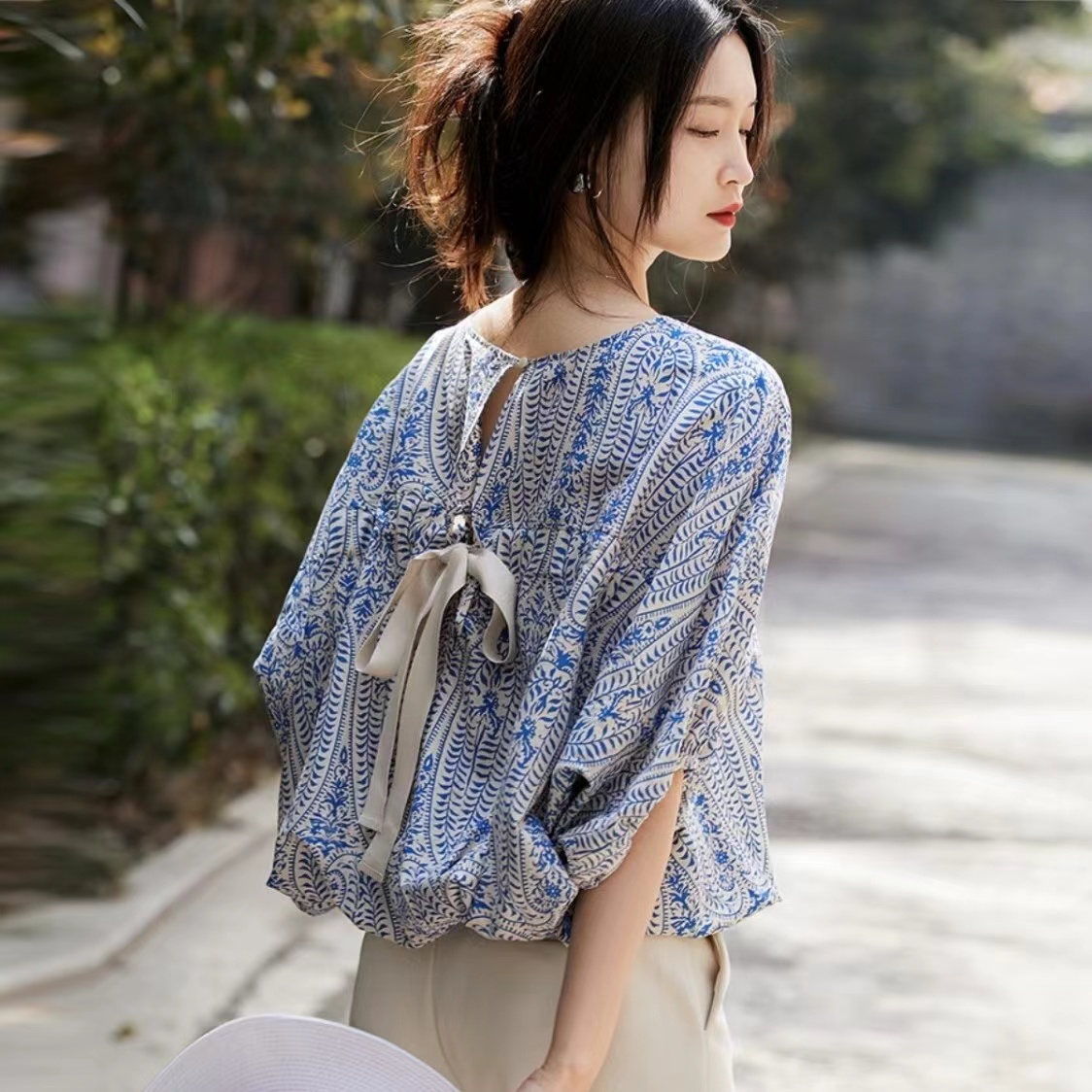ブラウス レディース ドルマン シャツ 春 夏 秋 花柄 トップス 半袖 着回しレディースファッション トップス シャツ ブラウス