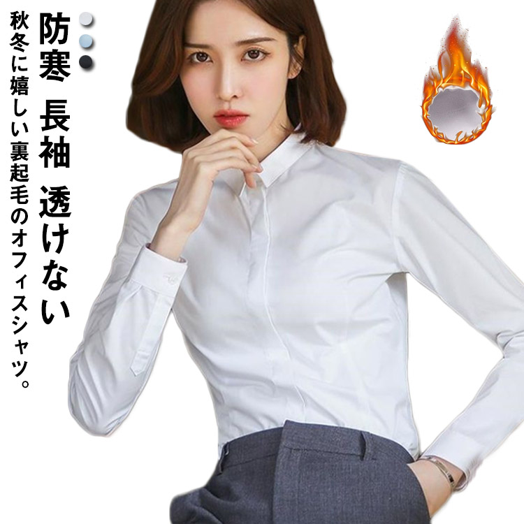 裏起毛シャツ レディースシャツ ワイシャツ ブラウス 白シャツ 秋冬 あったか 暖か 防寒 シャツ トップス オフィス 入学式 結婚式 細見え
