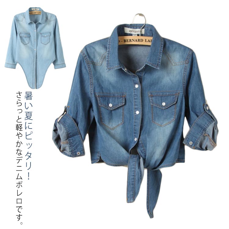 デニムシャツ ボレロ レディース 5分袖 前結び 羽織り 夏服レディースファッション トップス シャツ ブラウス