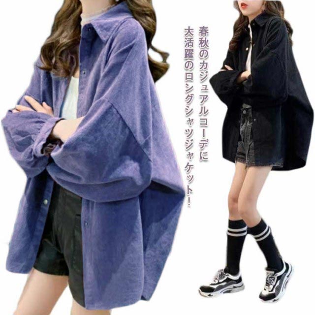 秋新作 シャツ ロング丈 シャツジャケット れでぃー ボリューム 無地レディースファッション トップス シャツ ブラウス