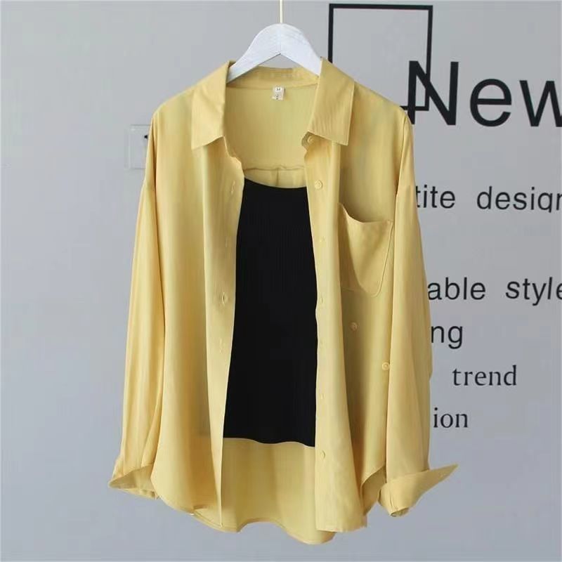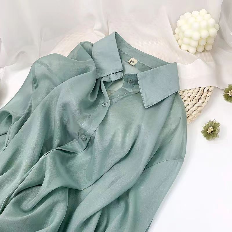 シャツ 無地 シアートップス 長袖シャツ 薄手 前開き 襟付きレディースファッション トップス シャツ ブラウス