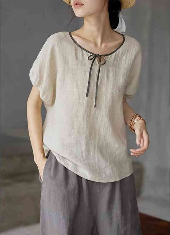 綿麻 シャツ ブラウス 半袖 レディース ネック 春 夏 トップス 大きいサイズ ゆったり プルーオーバー カジュアル 部屋着 無地 涼しい ルームウェア 通勤 オフィス