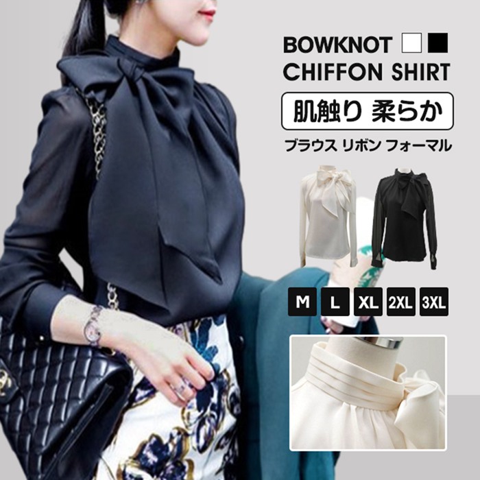ブラウス フォーマル 卒業式 入園式 七五三 リボンブラウス シフォンシャツ 肌触り 柔らか 女性 長袖 ブラウス レディース 面接韓国ファッション