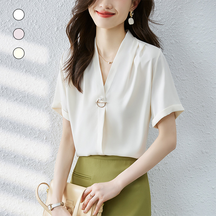 シャツ レディース ブラウス 通勤用 夏服 OL 薄手 ビジネス カジュアルシャツ 無地 オフィス カジュアル 可愛い