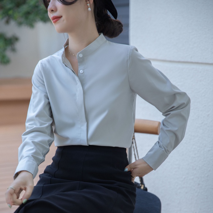 ブラウス レディース 立ち襟 シャツ 長袖 トップス 上品 オフィス 通勤 お呼ばれ ビジネス フォーマル