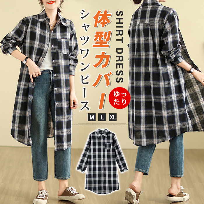 ロングシャツ レディース シャツ シャツワンピース ロングシャツ トップス チェックシャツ チュニック